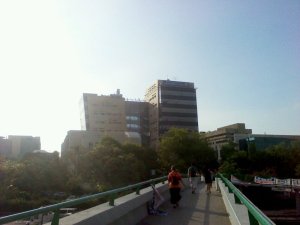 Utam egy gyalogos felüljárón vezet át, a Haifára menő 4-es út felett, hát nem szívesen ülnék itt a reggeli dugóban araszolva…