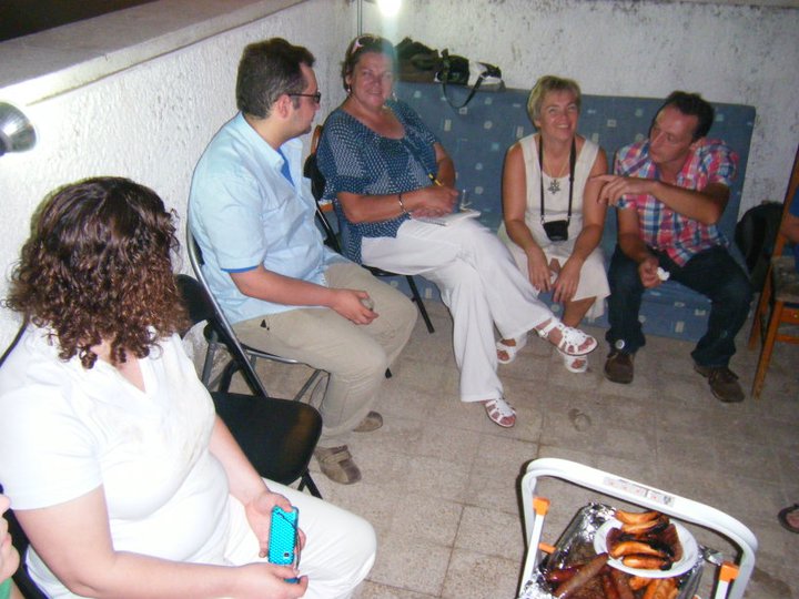 Tényleg nem több tíz percnél. Magyarok Tel-Avivból, Ashdodból, Kfar Sabáról. Hús sütés, zserbó,… élettörténeteket hallgatók, morzsákat az itt dolgozók és az alijázók, bevándorlók hétköznapjairól. Anna kedvesen fogad, szép helyen laknak a férjével. Talán 20-25-en lehetünk, családias a hangulat.