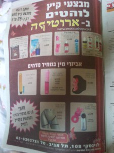 Az első ülés mögött erre a célra kihelyezett tartóban ingyenes újság lapul, az otthoni Metropol buszos változata, beszerzek egyet jó lesz majd “olvasgatni” a hétvégén. Lapozgatom, lapozgatom,… döbbenet a 43. és a 51. oldalon egy-egy egész oldalas szexshop hirdetés a segédeszközök képeivel. A DAN buszain osztogatott újságban! El tudja azt valaki képzelni, hogy reggel a pesti metrón Metropol olvasás közben, eseteleg a MÁV-Start Intercity Magazinjában vagy a MALÉV Horizon című lapjában hasonlóval találkozzunk??? OK, ez Izrael,… és akkor csak én vagyok túl prűd!!!