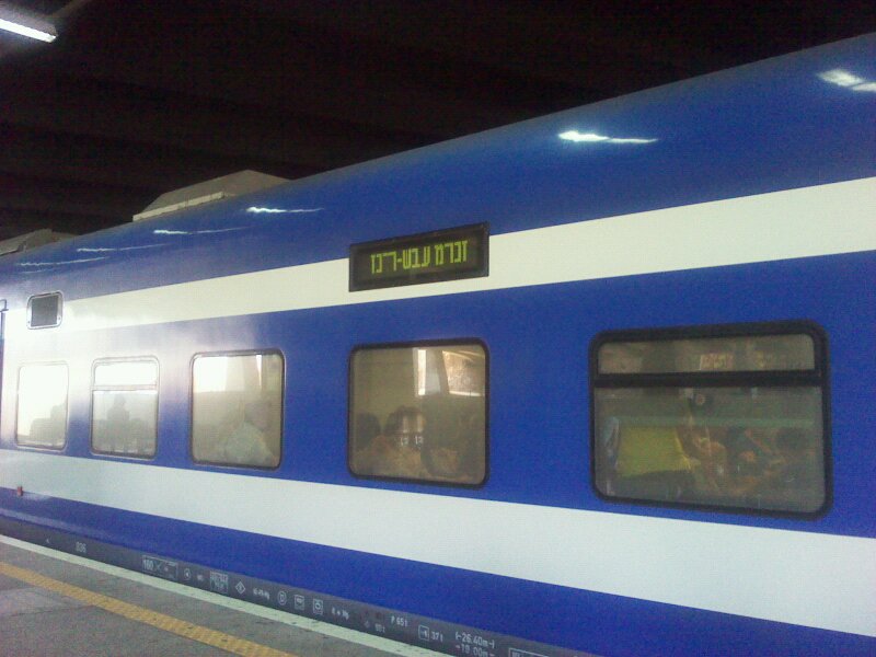 fegyverrel, ki fegyver nélkül… Családok, üzletemberek szállnak fel a befutó szerelvényekre. Alapvetően három vonattípussal találkozni, a néha felgyulladó gumiorrúval, az emeletessel és a kék-fehér csíkossal (az első két és az utolsó vonatos kép forrása a Wikipedia.com, a Beer-Shevára tartó kék-fehér szerelvényt én fotóztam le).