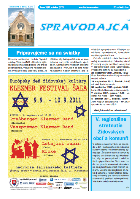 Tegnap kaptam egy e-mailt Soshanától, majd telefonon is beszéltünk… Néhány éve a biztatásomra Weisz Jehosua bácsi elkezdte megírni a élettörténetét a Hitközségi Híradó hasábjain. A Nagymegyerről származó, az itt élő komáromiak és környékbeliek egyik legaktívabb, közösség-összetartó tagja, közel két éven át folytatásokban közölte írásait Elmesélem az életem – Nagymegyertől Givatayimig címmel. 2010-ben könyv formájában is megjelent az izgalmakkal teli történet, s létezik angol és héber változata is. Tavaly sajnos elveszítettük Weisz urat, hosszantartó betegeskedés után. Azóta felesége testvérével, Soshanával tartom a kapcsolatot. Kiderült, hogy 1,5 utcányira lakik, így felkerestem.