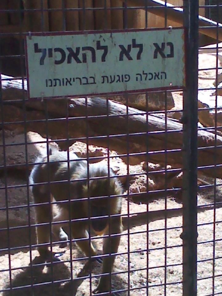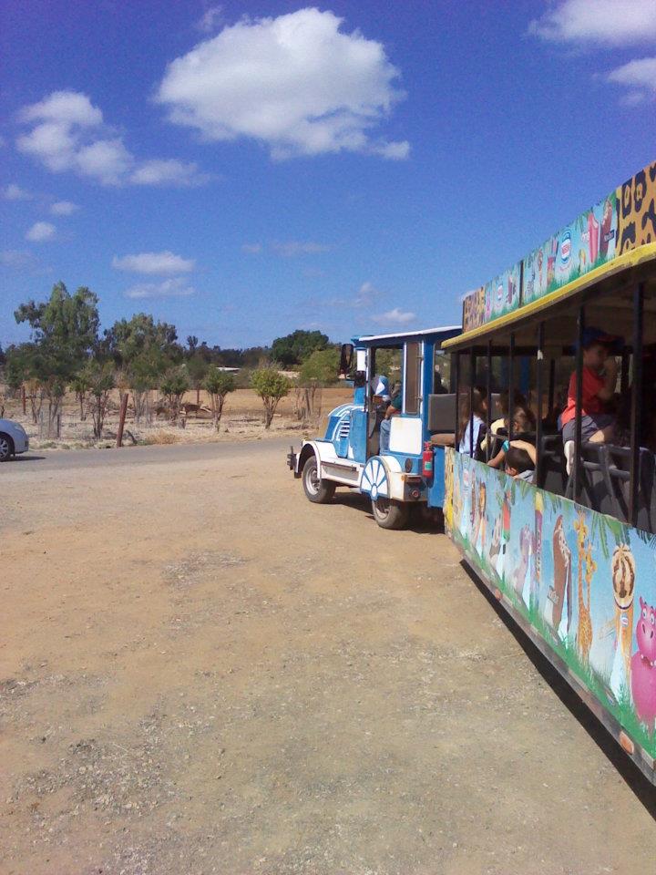 Mielőtt keresztül-kasul bejártam volna a területet, elcsábultam, s további 10 sékel ellenében felszálltam az állatkert kapujától induló kis-vonatra. Először kicsit frusztrált, hogy útitársaim átlagban 20-25 évvel fiatalabbak tőlem. Amikor megpillantottam azt a lányt, akivel a safari-busz együtt hozott (igen-igen a kakas etető), megnyugodtam, s kényelemesen hátradőlve hallgattam a héber nyelvű idegenvezetőt. Naivan azt gondoltam, a vonat majd a belső állatkertben visz körbe.