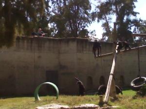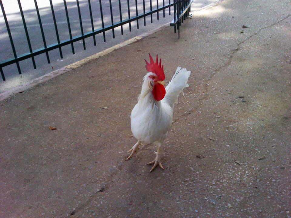 A kasszától a padok felé irányított a “katonás” pénztáros… sokáig egyedül vártam három kakas társaságában, melyek közül a fehér agresszív magatartást tanúsít irányomban… biztos szóltak neki a helyi macskák 🙂 Itt jut eszembe, mielőtt elindultam olvastam egy hírt: Oroszlánok, tigrisek, farkasok szabadultak Ohiora. Nekem sem árt tudni, kik laknak a szomszédomban. Türelmesen kivártam a negyedórát, közben csatlakozott hozzánk még egy eltévedt turista, aki rögtön elkezdte etetni a kakasokat. No ennyit a négynyelvű (héber-arab-angol-orosz): “Ne etesse az állatokat!” feliratoknak – gondoltam magamban.