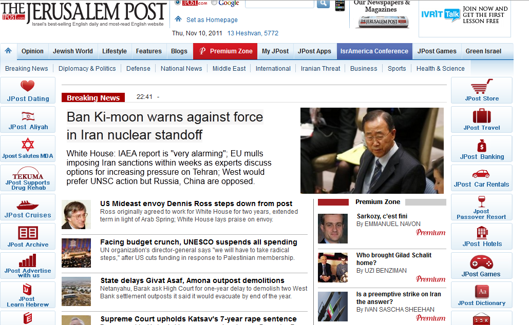 Elmélkedésemet a sofőr által felhangosított tíz órás hírek szakítják közbe – még mindig lenyűgöz, hogy a városi tömegközlekedés buszain 10 utazásból 7-nél szól a rádió -, fülelek, próbálom megérteni a héber szöveget. Két fő téma van, az egyre közeledő iráni-izraeli háború és Katsav korábbi elnök szexuális zaklatásának ügyében jogerőre emelkedett hét éves börtönbüntetés. Ez utóbbival kapcsolatban jutott eszembe, hogy amikor budapesti látogatásakor autogramot kaptam tőle, nem is sejtettem, milyen irányba is fejlődnek maj a dolgai… Az első hír sokkal inkább aggasztó, a londoni hírszerzés információi szerint még Karácsony előtt megindul a támadás az iráni atomlétesítmények ellen.