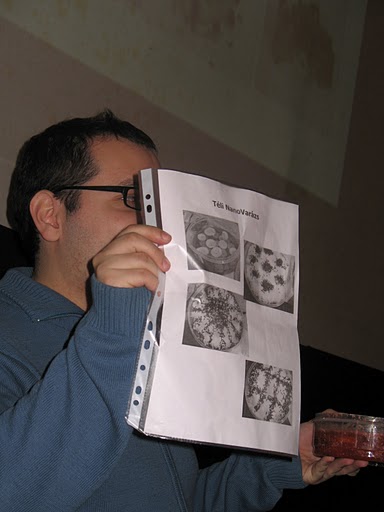 Az egyik első főzési kísérletem is a kocsonyás anyagokhoz kötődik. Két éve az osztálykarácsonyra nano-főzőversenyt hirdettek. Gondoltam, gyümölcszselével indulok. Két gond volt csak: egyrészt a Pesten beszerzett pornak önmagában nem volt annyira (sőt inkább semennyire íze), másrészt a gondosan elkészített banán karikákkal díszített három zselés-doboz tetejét megszórtam egy kis kókusz és csokireszelékkel. Mire másnap beértem a munkába, a BKV-nak köszönhetően összerázódott az egész, s hát elég furán nézett ki a banános-csokis-kókuszos-eper és erdei gyümölcs ízű zselé. Szerencsére volt fotóm a kiindulási állapotról is: