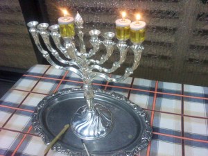 Bnei Brak felé visz az utam, a máskor zsúfolt 161-esen egyedül vagyok… A házak ablakaiban ezernyi pislákoló lángocska jelzi, chanuka 2. napja köszöntött be. Az akváriumban laknak a halak, a terráriumban a hüllők, a “chanukiáriumban” pedig – az ablakba kitett – nyolcágú gyertyatartók. Ilyet még tényleg nem láttam azelőtt…