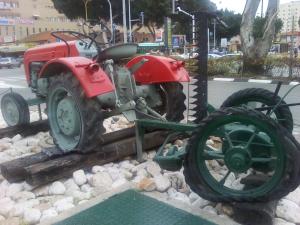 Leginkább az a régi traktor a hozzá kapcsolt ekével (remélem nem tévedek) ragadta meg a fantáziámat, amelynek testvérét visszafelé úton a rendőrség előtt szintén sikerült felfedeznem. Mielőtt elveszítem az utolsó rehovoti blog-Olvasót is, megjegyezném, a gyülekező esőfelhők sem kedveztek a megítélés tekintetében a 115 ezres “kisvárosnak”.