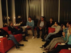 A februári könyvklub vendége Steiner Kristóf volt, aki 2011-ben megjelent kötetéből, a Lélekbonbonból olvasott fel, s megosztott egy-két élményt a “celebek” világából. A családias hangulatú est folyamán a hangsúly nem is a “hivatalos” programon volt, inkább a személyes beszélgetéseken. A tucatnyi érdeklődő között feltűnt kedves szomszédom Anna, s megismerkedhettem három Rehovotban kutató kollégával is. A grillezett zöldségekkel és süteményekkel teli asztal gondoskodott a vendégekről a szellemi táplálék mellett.