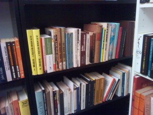 Az egyetemről a 39-es busszal utaztam a városrész bevásárlóközpontjáig. A kanyontól 10 percnyi sétára, egy tipikus tel-avivi ház legfelső szintjének magánlakása rejti az “intézményt”. Gabi és párja büszkén mutatta be a könyvtártermet, a bejárathoz legközelebb eső szobát. Körös körül polcok, megrakva régebbi és a könyvpiac legfrissebb kiadványaival. Van igazolvány, saját könyvjelző, szigorú nyilvántartás.