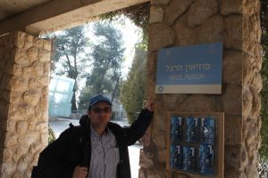 A tágas, halk villamos lenyűgözött, érdekesek a kocsik közepén elhelyezett alacsony kapaszkodók… A Tű-hídon áthaladva csodás panoráma tárul az utazók elé. A Herzl-hegyi fejállomásig utaztunk. Az állam nagyjainak is utolsó “otthont” adó katonai temetőben megnéztük a Herzl “álmáról” szóló kiállítást. Csak kapkodtam a fejem, mikor merre nézzek, füleljek, a látogatót érő számtalan hang-, képhatás tengerében. Igazi élménymúzeum, nyugtáztuk a kijárathoz közeledve. Olyan nagyon kék-fehér hely, pont ahogy Izraelt szeretjük látni a távoli diaszpórából.
