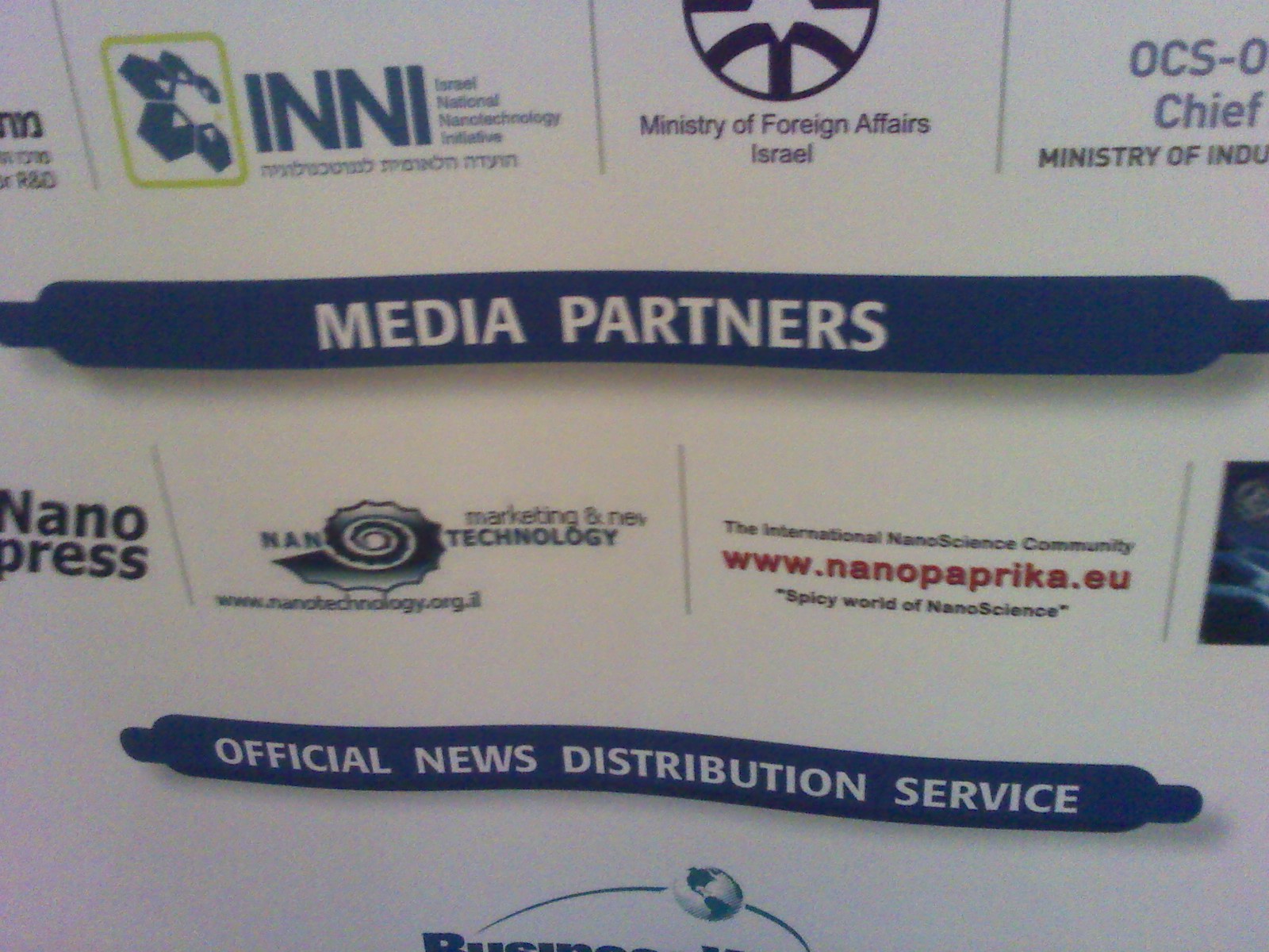 Eltelt két év, s most a DAN kék-fehér buszán a nanokonferenciára tartok, átszelve Ramat Gant és Givatayimot. Mi ez, ha nem egy álom beteljesedése? A delfináriumnál szálltam le, csábított a tengerpart,… de… most a szakmáé volt az elsőbbség. Mozgólépcső vitt le a David Intercontinental Szálloda konferencia szintjére. Az első dolog, ami szembeköszönt egy molinó volt a fórum támogatóival és partnereivel. Ott virított rajta a The International NanoScience Community – http://www.nanopaprika.eu “Spicy world of NanoScience” felirat is. Kihúztam magam, mégiscsak ez az első olyan szakmai összejövetel – a közel 90-ből, amelynek médiatámogatója volt az elmúlt 4,5 évben általam szerkesztett tudományos közösségi oldal -, ahol valóban meggyőződhetem a szervezőkkel kötött bartermegállapodásunk valós kivitelezéséről.