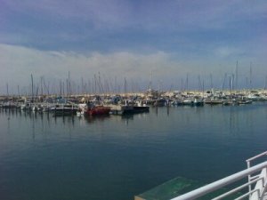 Este sokáig követtem a hazai híreket a neten, így picit még álmos voltam, amikor reggel a kikötőben rokonokkal találkoztunk. Hét ágra sütött a nap, az egész part megtelt, mintha nem is a Gáza árnyékában élő Ashkelonban lennénk. Persze az éppen befutó katonai őrnaszádok azért árnyalták az idilli képet.