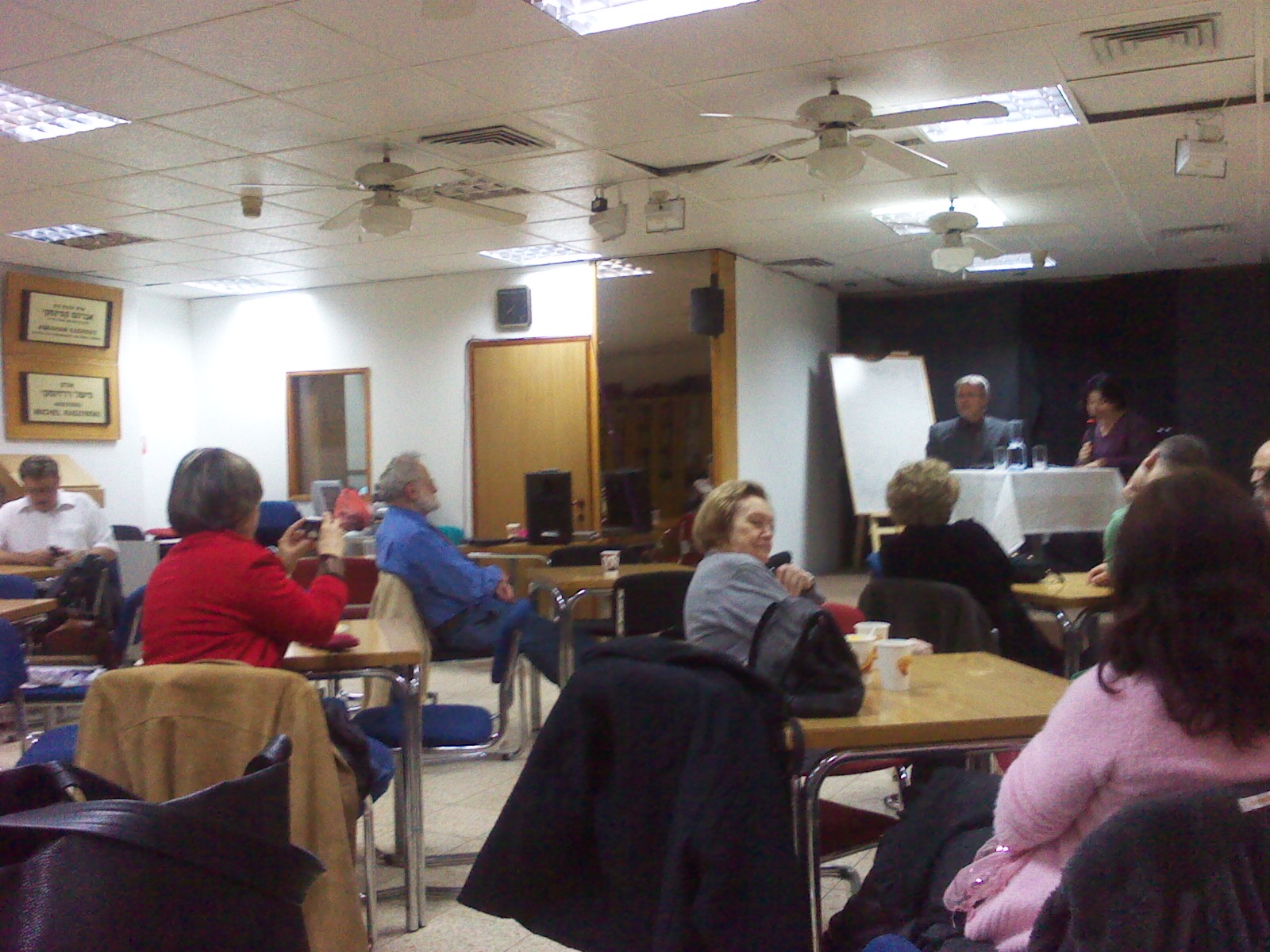 Fél nyolcra – mire nagy nehezen elkezdődött a hétre hirdetett beszélgetés -, megtelt a terem. Volt pár ismerős arc, akikkel már volt szerencsém találkozni ezeken az összejöveteleken. Szentgyörgyi Zoltán, Magyarország tel-avivi nagykövete mesélt munkájáról, elért eredményeiről, a diplomataélet mindennapjairól. A hangulatos beszélgetéshez hozzájárultak a nézők soraiból érkező kérdések is. Mire az órámra pillantottam, lassan tíz volt.