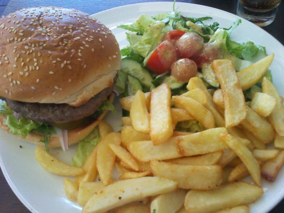 Kicsit lejjebb rá is akadtam egy másik, az előzőnél sokkal zsúfoltabb helyre. Ahol sokan vannak, ott biztos jól is főznek. A Nelson 33-ban angol étlap nincs. Az eddigi tapasztalataim szerint az éttermek kb. felében gondolnak csak a héber nyelvvel hadilábon álló vendégekre. Szóval a végén a héber nyelvű étlapot nem hagyta ott a csábítóan miniszoknyás pincérlány, helyette egy “élő-menüsor”, angolul az előző hölgynél még jobban beszélő társa világosított fel a hely kínálatáról. A harmadik vagy negyedik szó a HAMBURGER volt, jó ne is folytassa, emellett döntöttem, törtem le a lelkesedését pillanatokon belül.