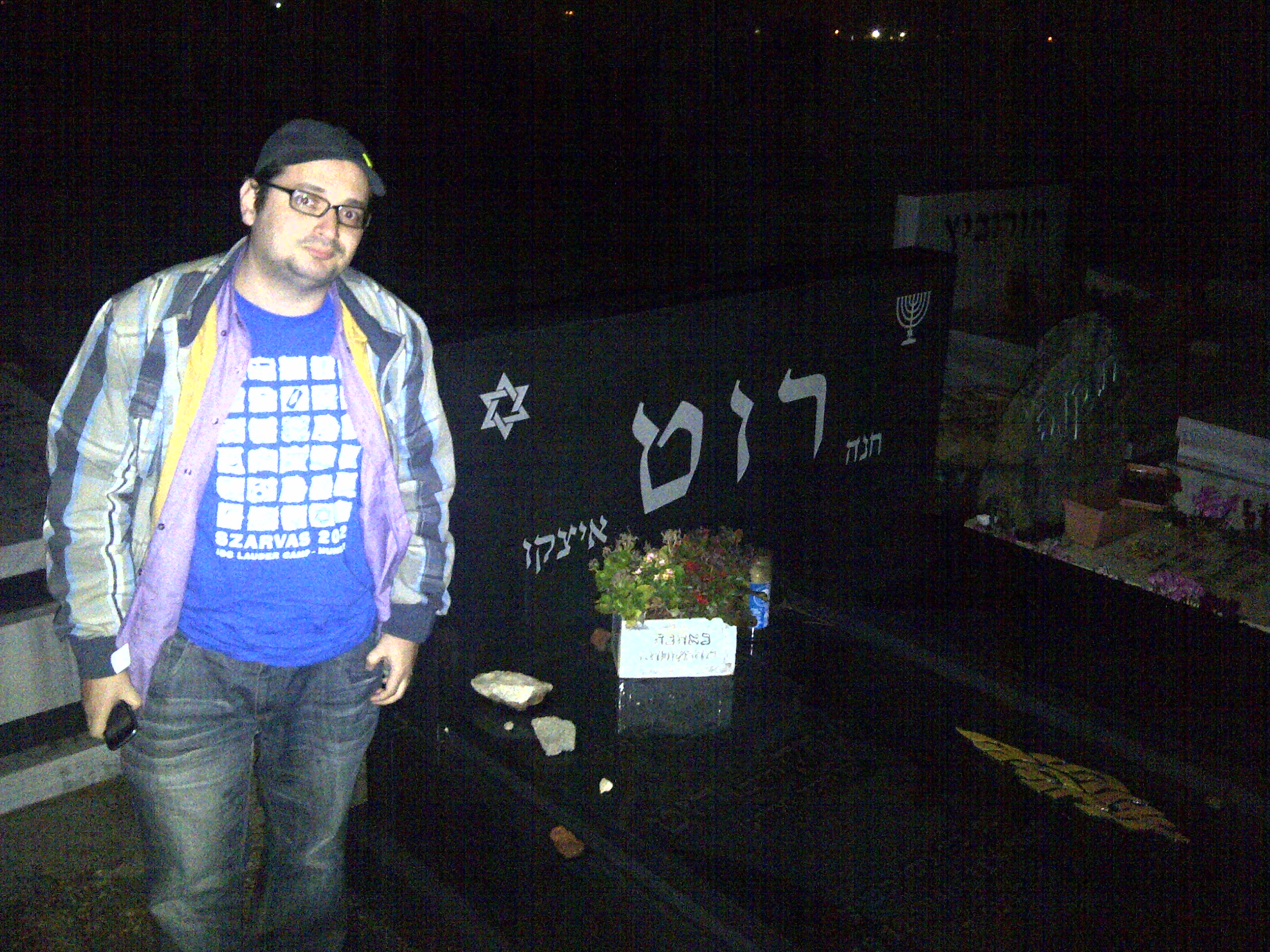 A sabbat kimenetele után, természetesen már sötétben indultunk a közeli temetőbe. Az utolsó léptek voltak a legnehezebbek, három kavicsot emeltem fel az út mellől, egyet a sírra tettem, hagyományaink szerint, kettőt magammal hoztam e különleges helyről. “Boker tov machane! Jó reggelt tábor!” – szerettem volna hallani, de a fekete márvány sírkő némán őrzi a szarvasi legendás táborvezető emlékét. Az ahvai temető egy olyan hely, ahova legalább egyszer mindenkinek el kell zarándokolnia, aki sokat kapott a Jickó-féle nyaraktól…
