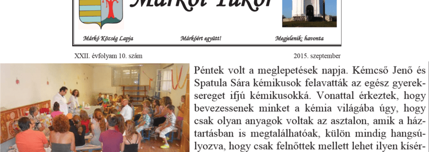 A Veszprém melletti Márkó település kézműves táborának zárónapján, Kémcső Jenő (dr. Paszternák András) és Spatula Sára (Szendy Barbara) tartott – az informális oktatás módszereit felhasználva – kémiát népszerűsítő foglalkozást közel harminc érdeklődőnek. A Márkói Németek és Magyarok Baráti Köre által rendezett délutáni táborba a szülők és nagyszülők is elkísérték a gyerekeket, aktívan bekapcsolódva a kísérletezésbe.